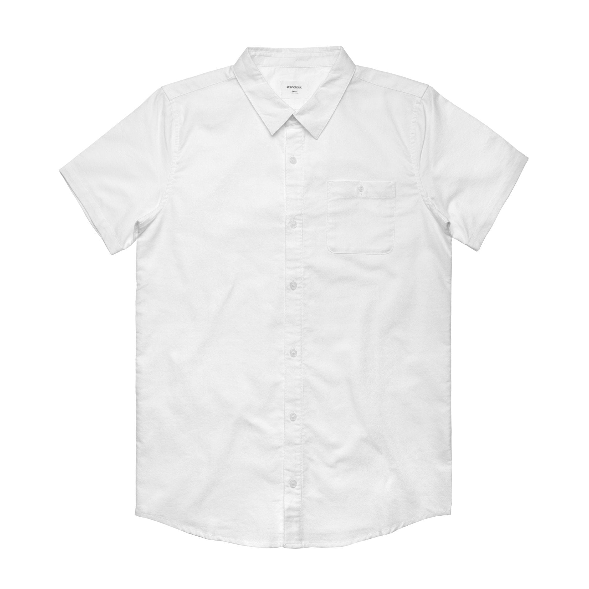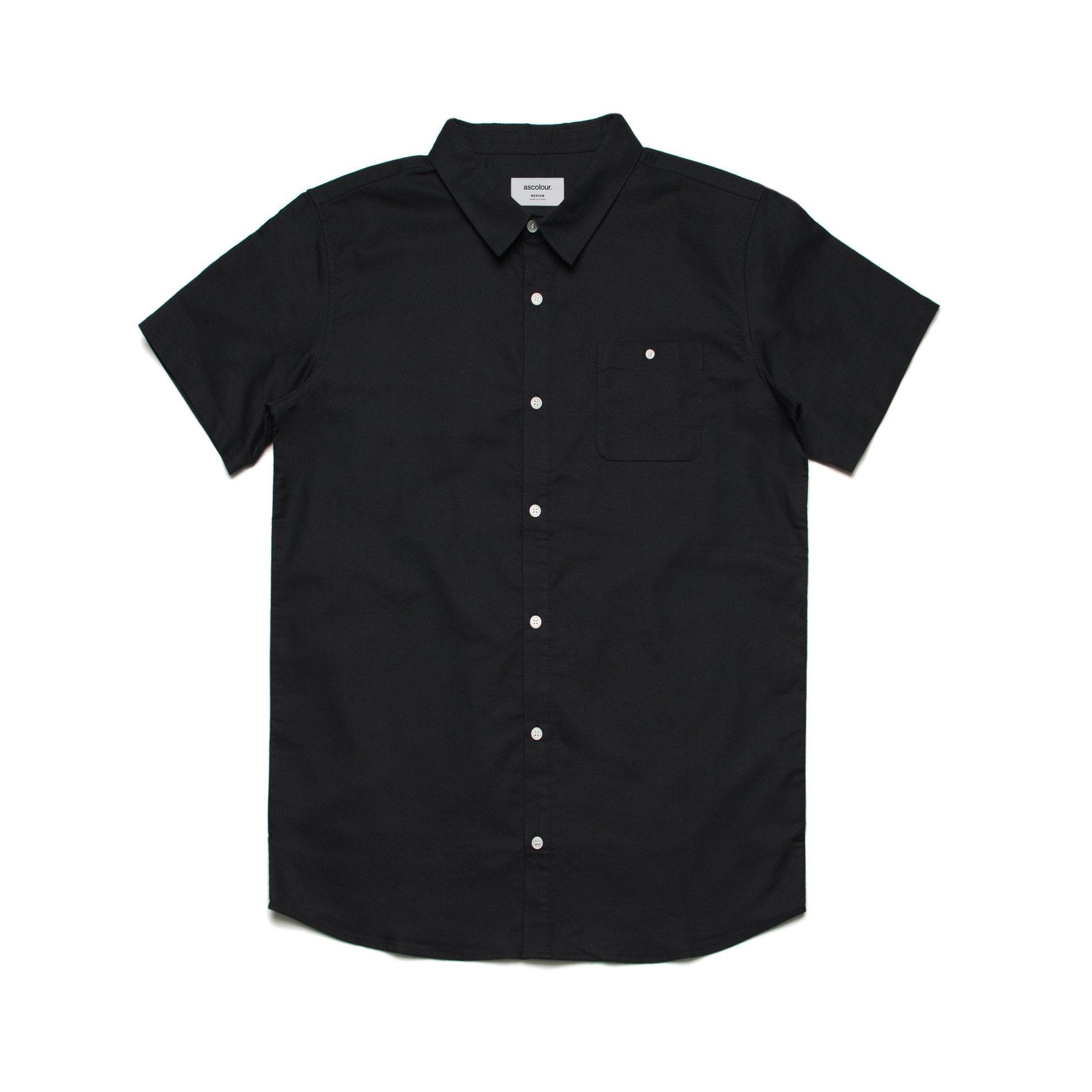 Short sleeve button up shirt, button close chest pocket, clear buttons